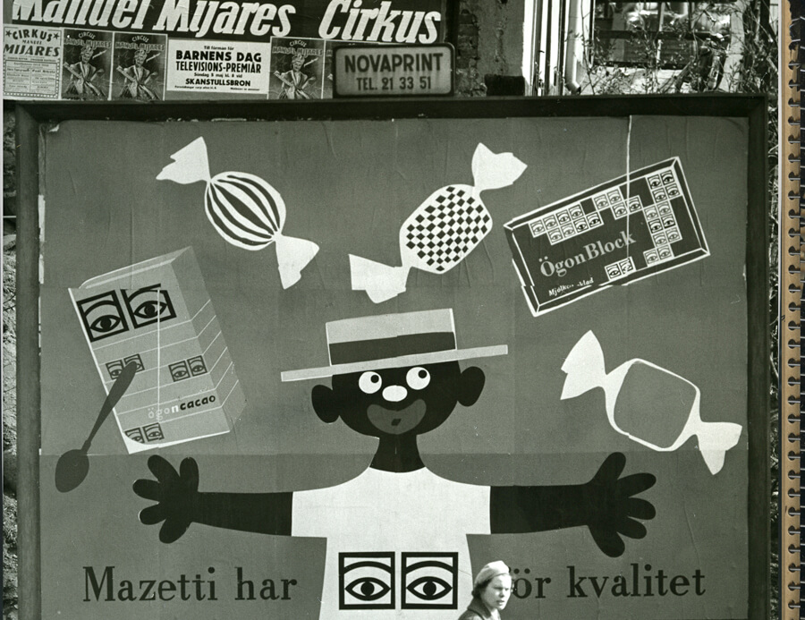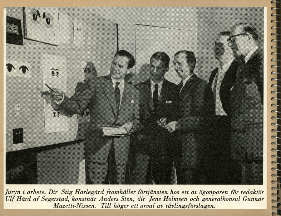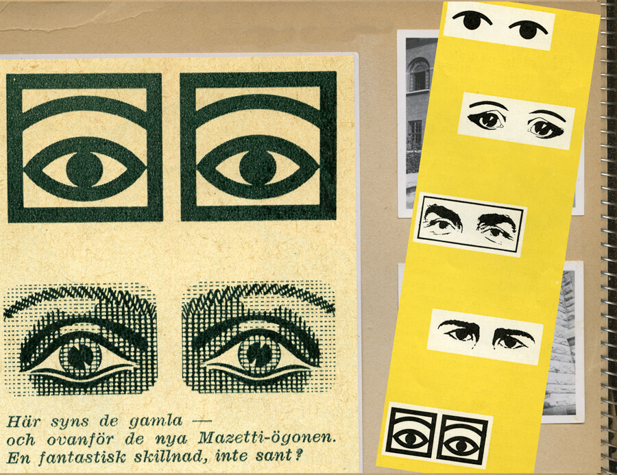ÖGON CACAO – 1956 | Olle Eksell was the creative designer ahead of his time. This could be seen in the famous eyes of cacao, which was part of Sweden’ s first design program that Olle designed for Mazetti. The Eksell couple lived in their apartment in Gärdet, Stockholm for more than 40 years. It was here, in a five square meter studio, that Olle created and designed Sweden’s well-known programs for Mazetti and Nessim. While working, Olle would think things out in every detail, having the ideas clear in his mind, before he put the designs down on paper. He always maintained a focused attitude, even while dressed casually in pajama bottoms and a t-shirt.