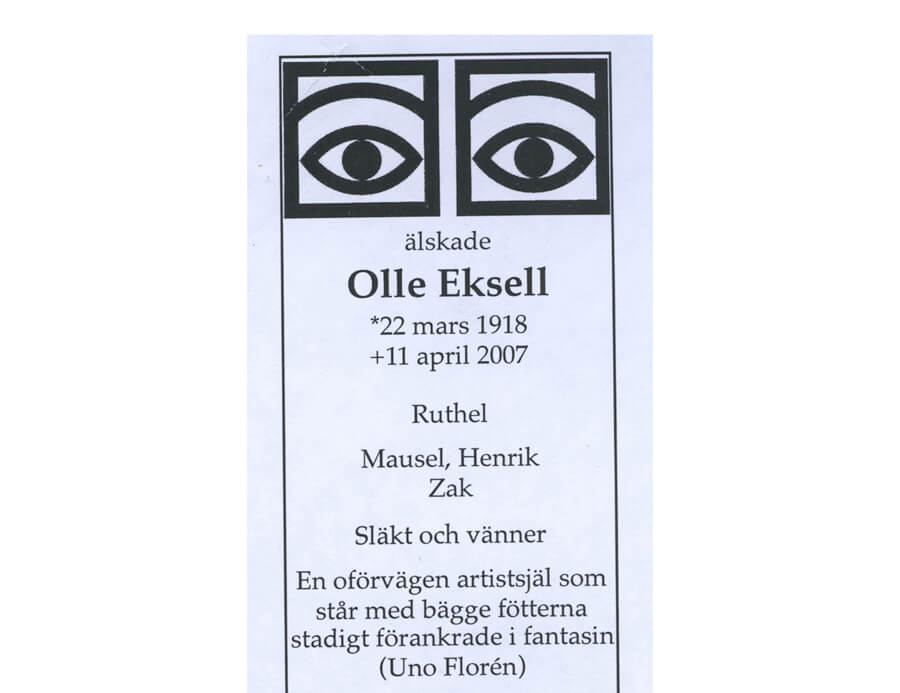 CLOSED EYES | Olle Eksell’s career has not yet been parallelled in Swedish advertising history. His illustrations range between the crazy, the fanatasy filled, and abstract geometry. Olle was the creator/designer who loved his work and who never stopped creating. He continuted to work until his death in 2007.